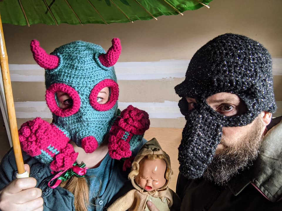 Chugging right along, here you see quarantine is in full swing. My good friend Christy Broy Art hosted a Quarantine Cosplay Contest and guess who won! I whipped up a gasmask (pattern by The Twisted Hatter) and a plague doctor mask (pattern by Crochetverse), added some creepy accessories, and snagged the victory! This was definitely a 2020 highlight for Casa Wolf Bite!