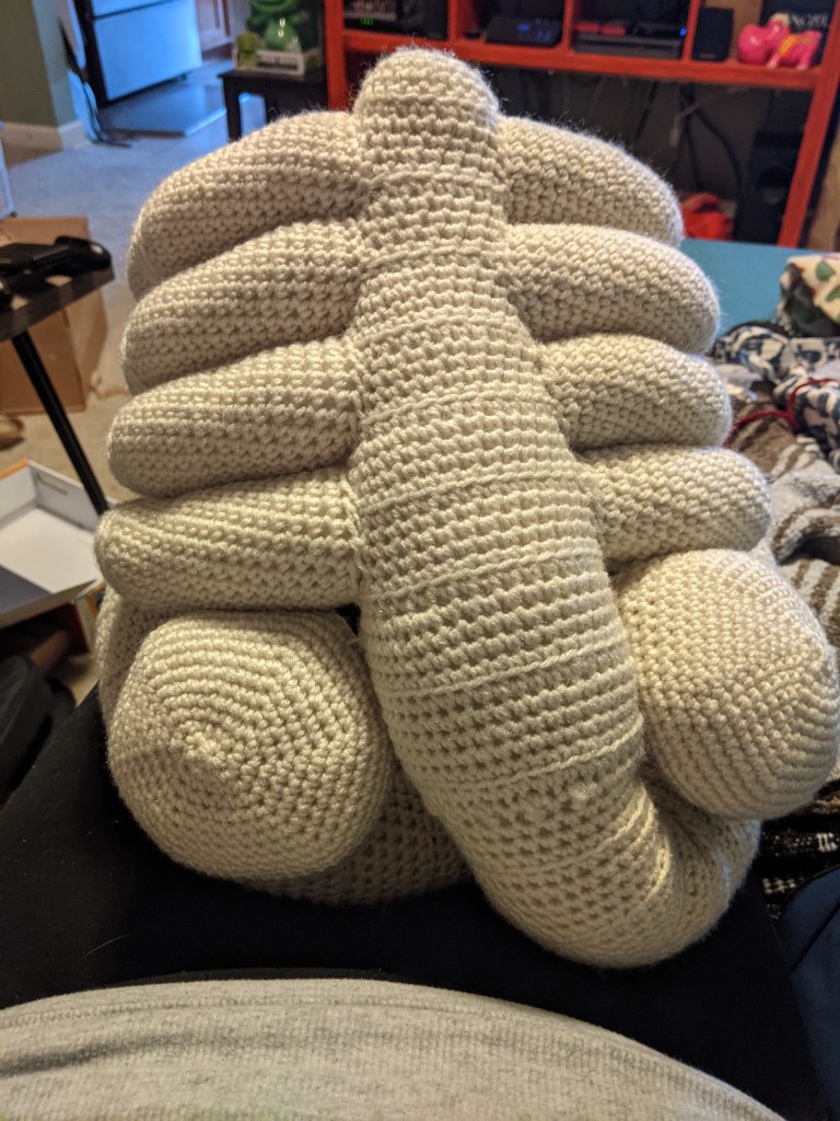 We will not, however, be teaching the children how to make their own Facehuggers from the Alien franchise. They have to go to a different museum for that. This Facehugger (pattern by Cindy de Vries) in particular was done as part of an Alien themed Christmas present for Mr. Wolf Bite for being such an excellent crochet helper and life partner. The other part of this present was a light up paper mache/clay/glue/latex monstrosity of an egg pod, which actually turned out kinda cool and may get posted to Instagram in the coming days. Stay tuned!