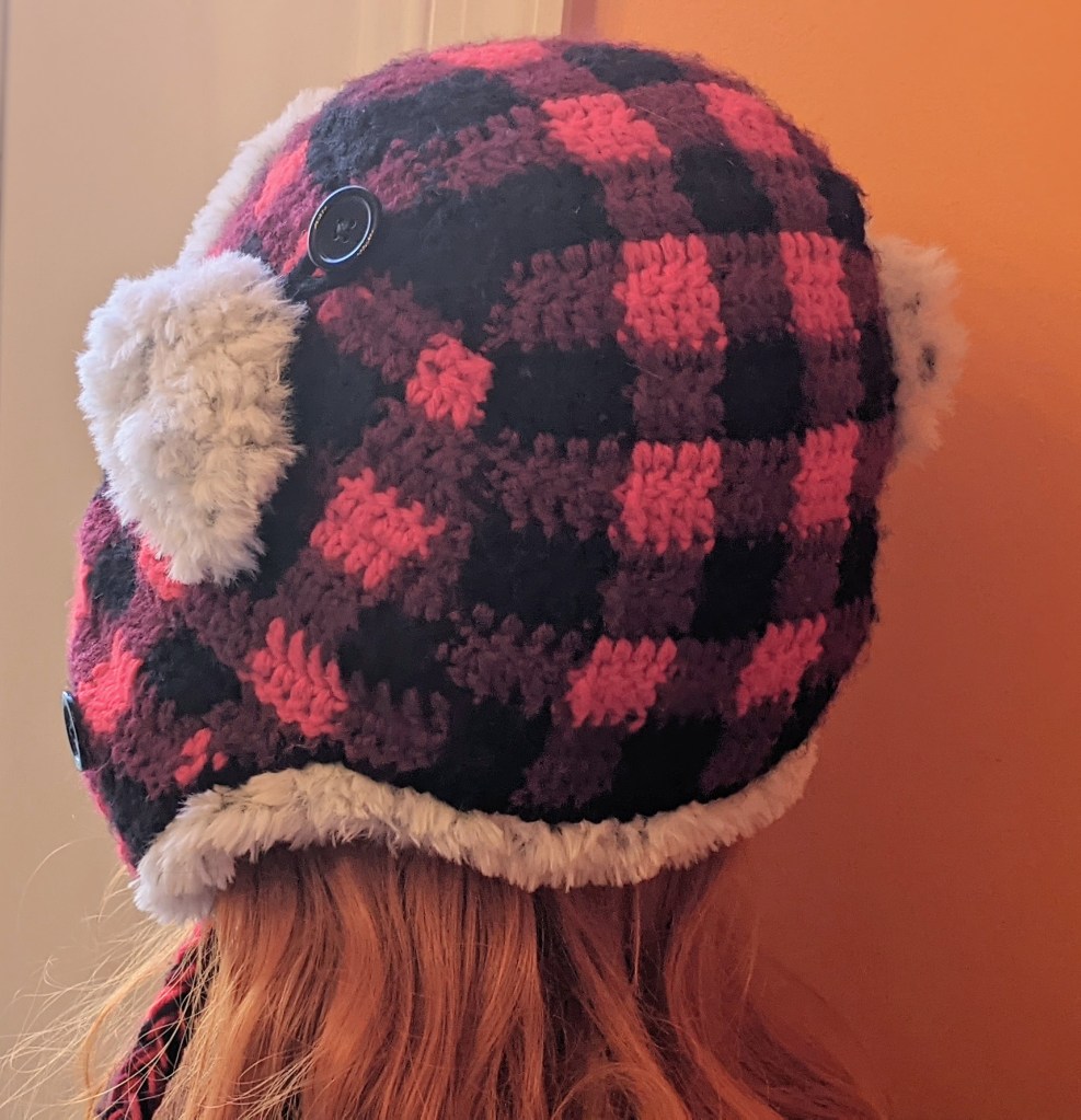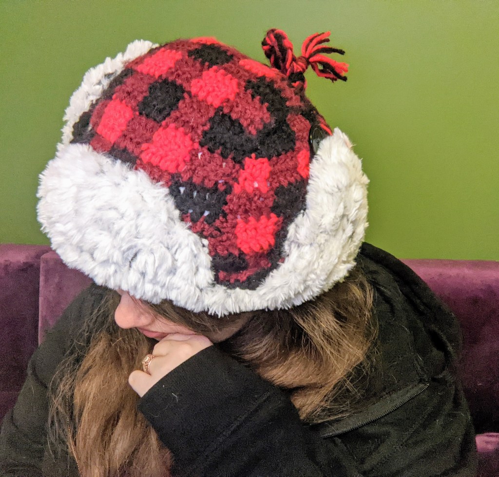 With that aim in mind, I designed a new fluffy, double layered hat. The Plush Plaid Trapper Hat is fully lined in faux fur guaranteed to keep your head nice and toasty! The pattern is written for an average adult/teen size head and includes instructions for both the fur liner and plaid outer shell. You can find more details on the pattern page at Ravelry or Etsy.
