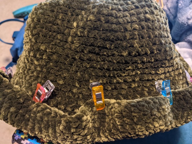 -Note: The next three rnds will try to calm those points that should be forming around the brim. It’ll be the same technique we’ve been doing, but the increases will go in different spots to help up round things out a bit.