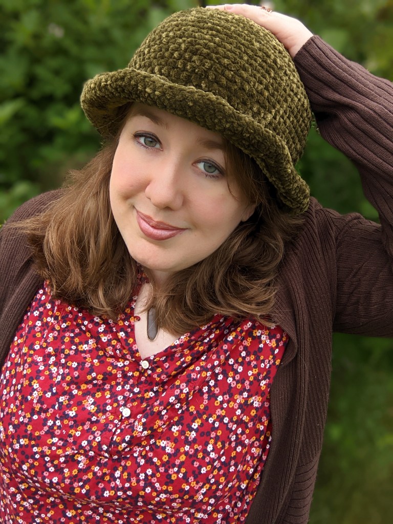 What I can do in this post, however, is pay homage to one of the most iconic BFFs in teenage television history by offering a pattern inspired by one of the many fabulous hats featured on Felicity. This hat is worked using a bulky velvet yarn and smallish hook to help give it a little bit of form. The yarn has very little give, so keep that in mind and adjust accordingly where noted if you need to. The pattern was written to fit an average to large adult head size, but could be adjusted to suit other needs by stopping increasing rounds as needed.